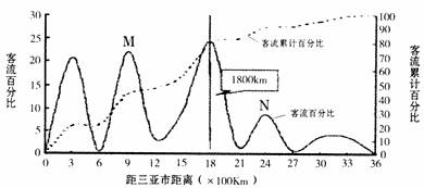 材料二:下图是三亚市客源空间分布距离曲线图。