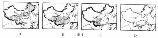 3.按正常年份推算,图1中能正确表示第29届奥运会期间我国锋面雨带影响范围的是( )