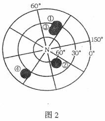 图2中的圆形阴影部分表示四种农作物分布地区,根据图中提供的信息,完成5-6题。