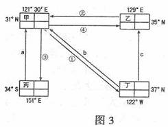 A.乙地正午太阳高度小于丙地 B.丙地白昼时间比乙地短