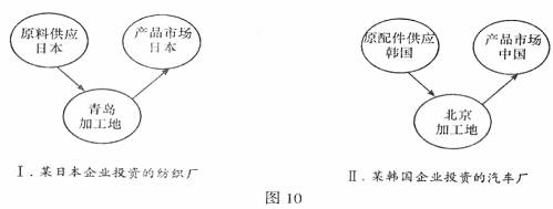 (2)比较说明图10两家工厂的原料地、加工地和产品市场的异同点。(4分)