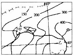 D.图中甲处等降水量线密集的主要影响因素是地形