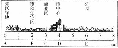 下图为一个温带地区某城市横剖面示意图。回答3题。
