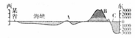 5.关于图中C海区下地形和A岛说法正确的是 ( )