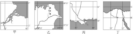下图为世界上四条著名大河入海口附近的示意图,读图回答8-9题。