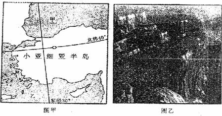 材料二:图乙为小亚细亚半岛所在国家的地理景观:棉花堡。