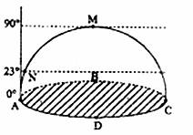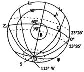 9.下图中实线圆圈表示等太阳高度线,表示C点的地理坐标以及AB的距离的是