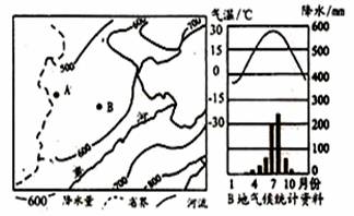 (3)图中A地的农作物单产比B地高,试分析造成这一差异的自然原因(12分)