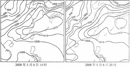 下图是亚洲东部某区域两个时刻的等压线图(单位:百帕),读图回答1-3题。