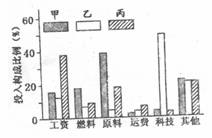 下图反映甲、乙、丙三类工业的投入构成情况,据此回答4-5题。