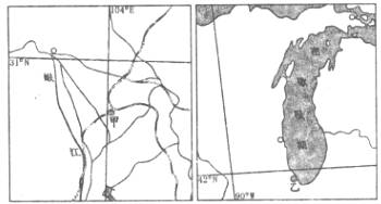 (2)甲、乙两个城市附近地区农业地域类型有明显差异,甲城市附近地区主要为__________,乙城市附近地区主要为__________。出现差异的首要自然因素是___________。(6分)