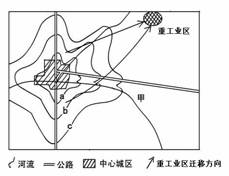 下图为我国某城市地租分布等值线图(数值:a>b>c),读图判断15-16题。