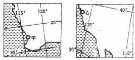 D. 甲地降水少于乙地,处于东南信风的背风坡