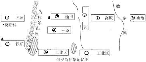 26.(9分)读“俄罗斯抽象记忆”图,根据序号提示,填出图中相应地理事物的名称。