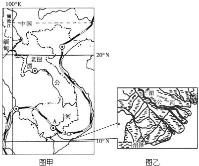 (2)读图乙,描述湄公河下游水系的特征并分析其形成的主要原因。(3分)