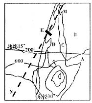 36.(36分)下图为世界某一区域简图,MN表示晨线,与30°E经线所成的角为15°,读图回答下列问题。