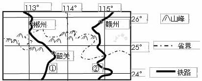 位于粤赣两省交界处的梅岭山区中的梅关古道,始通于秦汉,在粤汉铁路(今京广铁路南估)修建之前,是广东和外界最主要的通道之一,成为当时中国南北交通要道和经济文化交流的枢纽。读图回答9-11题。