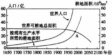 (5)由世界可耕地总面积和世界人口两条曲线的变化趋势,可说明什么问题?