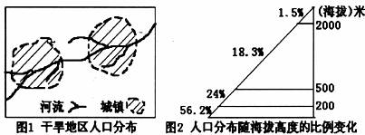 (1)图1、图2和表1表示的影响人口分布的主要因素分别是_________、_________和_________。