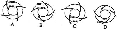 24.能够大致示意形成上述天气现象的天气系统是图中的