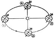 (4)当地球公转到位置①时。北半球的季节是_________,太阳直射的纬线是_________。(2分)
