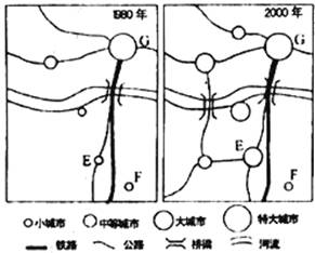 (1)结合图中所提供的信息,说明该区域城市发展变化的特征:(3分)