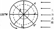 (1)请在图中画出晨昏线的位置,并用斜线表示出夜半球。