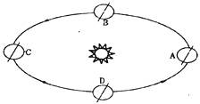 (3)当地球运行到D点时为___________(节气)日,此时全球正午太阳高度随纬度的分布规律是____________________________________________。