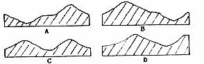 12.从地形上来看,以下四幅剖面图与上图甲乙线段经过地最相符的是