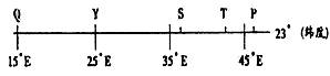 下图是世界地图的一段纬线,P点以东和Q点以西分别是海洋,S和T之间是海域。判断14-15题。