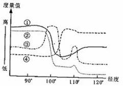 读“沿我国300分布的四地理要素度量值变化趋势图”,回答9~11题