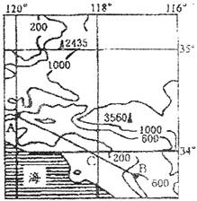 37.下图为“世界某地等高线分布示意图”,读图回答下列问题。(12分)