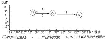 7.第一次转移是从乙地转移到甲地,甲地汽车产量迅速增加的有利条件是 ( )