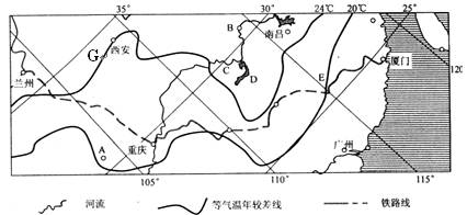 C.E地水土流失严重 D.G地沙漠化现象严重