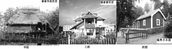 ②甲、丙两地区传统民居都与当地的自然环境相适应