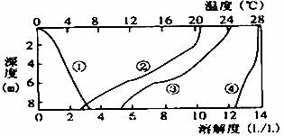 某研究性学习小组调查了一个温带湖泊的情况,并将冬季和夏季不同水深的氧气含量和温度绘成曲线图。据下图完成第2-3题。
