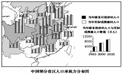 下图为“中国部分省区人口承载力分布图”,读图完成4-5题。