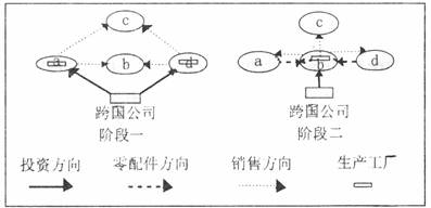 下图是表示某发达国家跨国公司工业投资的地域变化,a、d两国均为发达国家,b、c两国均为发展中国家。读图回答5-6题。