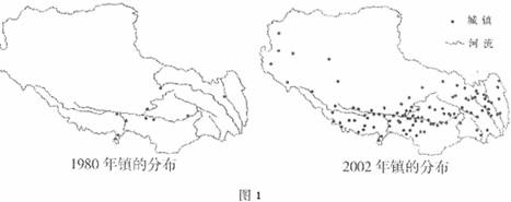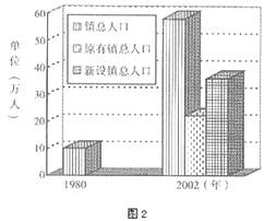(5)图1为图示区域中一个省区的城镇分布变化图,图2是该省区的城镇人口变化统计图,据此指出该省区城镇化的主要特点。(8分)