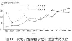 粮食危机紧急情况的次数大于 ;其后两者交替上升。(3分)