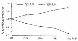 25.中心商务区白天人口与夜间人口密度的变化直接反映