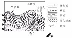 图5为某处地层未曾倒置的地质剖面图,其中①至④代表所在地层的成岩作用。据此回答12-14题。