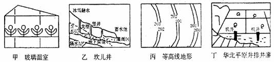 19.图中四地发展农业生产,分别改造的自然条件是 ( )