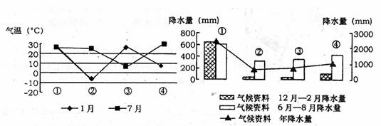下图表示的是四个地区的气温和降水等气候资料,回答27-28题。