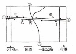 34.如图中黑点表示加油站,则影响该地理事物区位的主要因素是 ( )