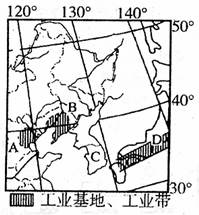 (4)D国的工业主要分布在 和 地区。近年来,D国在经济发展方面在某些发展中国家建厂的发展战略,分析其原因。(6分)