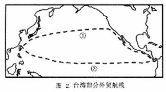 (4)台湾经济以“进口-加工-出口”型为主,外贸占有相当重要的地位。货物从中美洲运往台湾时,大多数船长选择图10中的②航线,为什么?(4分)