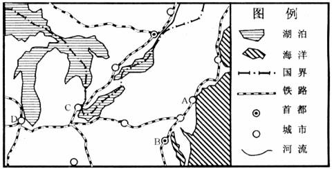 (3)被称为美国“汽车城”的是 (填字母),其形成的主要条件有哪些?(8分)