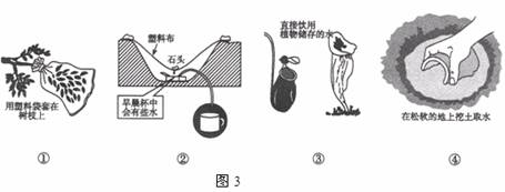 6.读图3,在野外获取纯净饮用水的合理方法和应用的地理原理连线正确的是 ( )