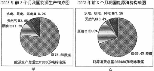 7.图中关于我国2008年前8个月能源生产与消费的叙述正确的是( )